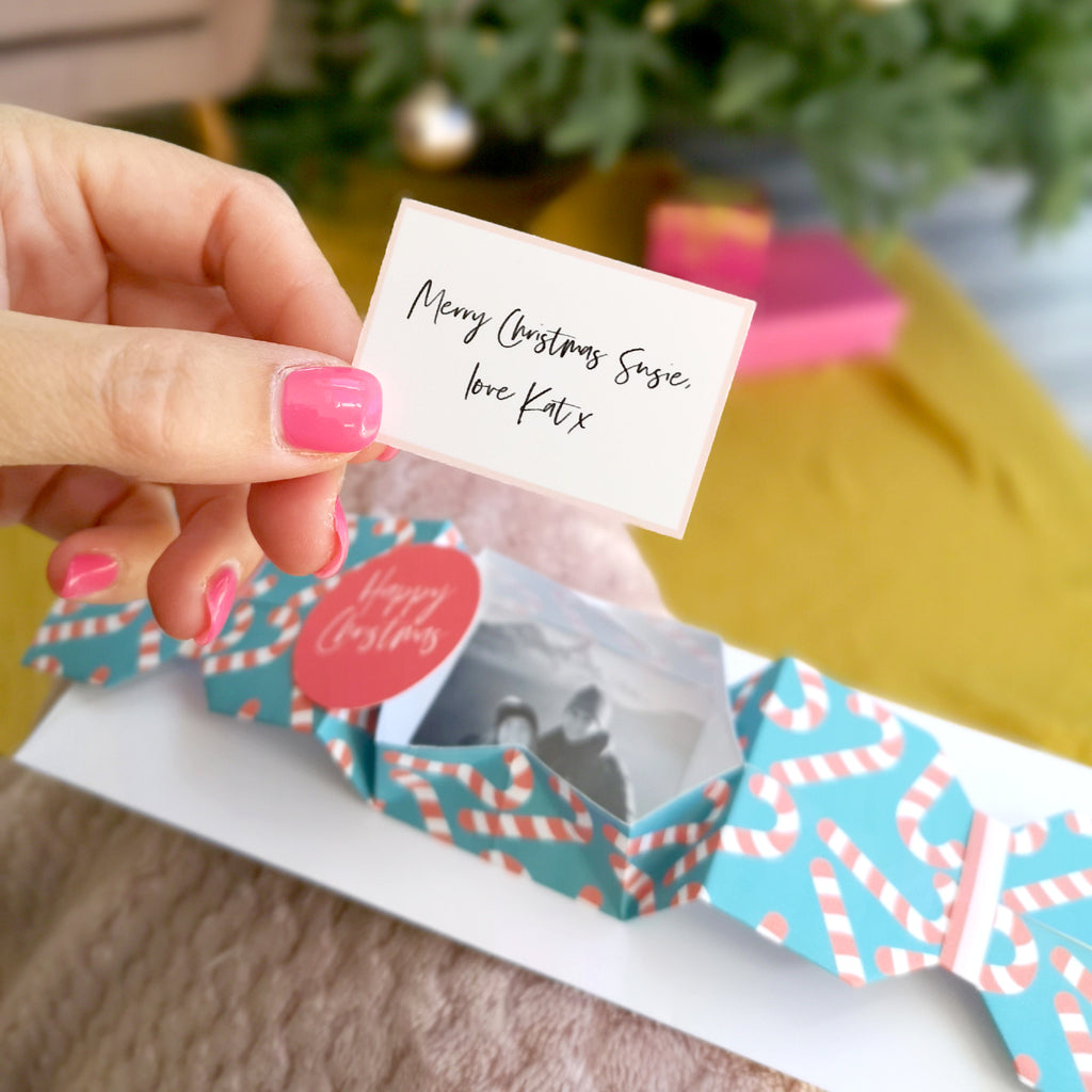 This Christmas, give friends and family a keepsake which they will cherish for years to come with this personalised Christmas cracker photo greeting card.