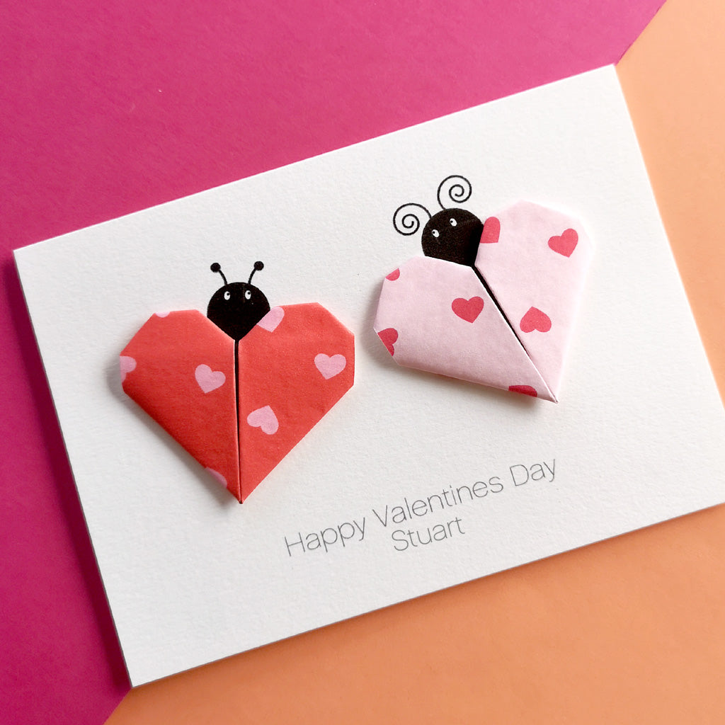 Celebrate Valentine's day with this personalised love bug origami valentines day card.