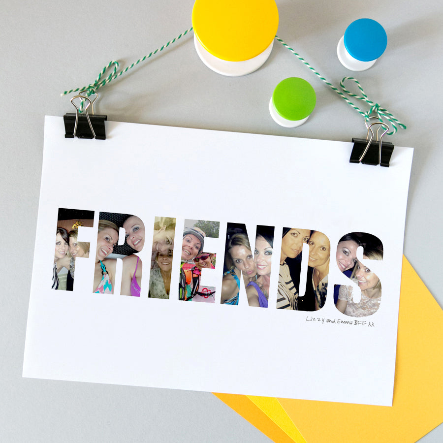Give your friend a gift they’ll treasure forever with a personalised photograph ‘Friends’ print, using beautiful photos of special moments together to spell out the word.