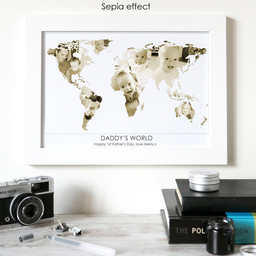 Give Daddy a gift he’ll treasure forever with a personalised ‘Daddy's world' photograph map, using beautiful images of his children to create his world.