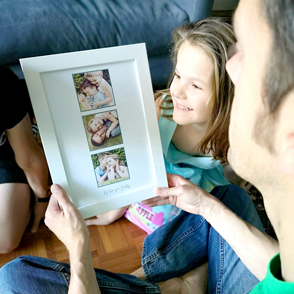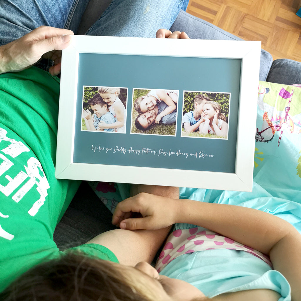 This Father's Day, give a gift he’ll treasure with this personalised framed photo print for Daddy, with images of his children and a message underneath.