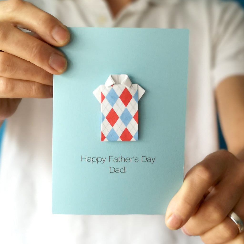 Treat your golf mad Dad to the perfect Father's Day card with this personalised golf shirt origami card.
