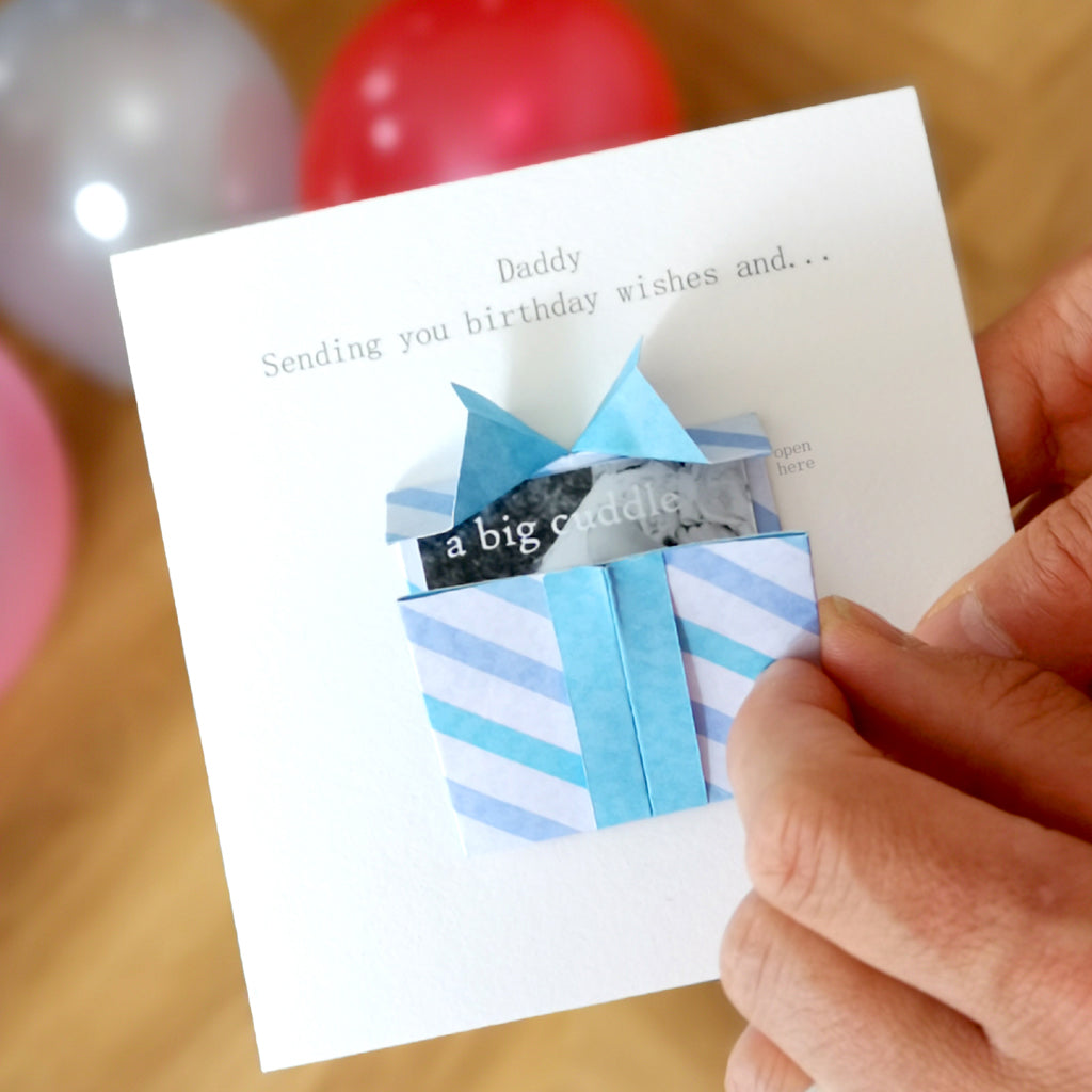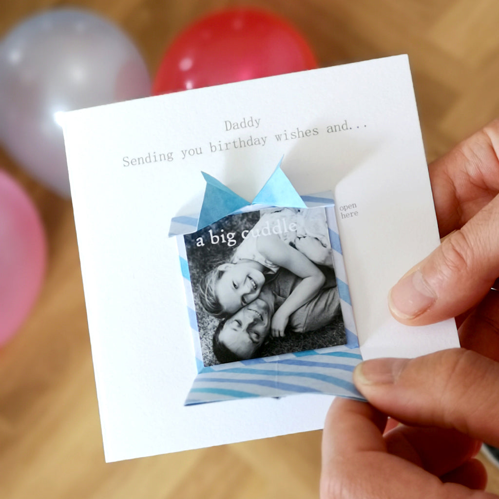 Why not brighten Dad’s birthday by sending him one of our personalised birthday origami photo cards with a hidden surprise?