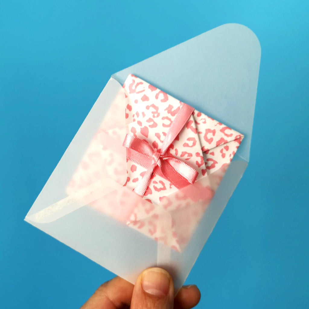 Origami keepsake 75mm x 75mm. Vellum envelope 92mm x 92mm