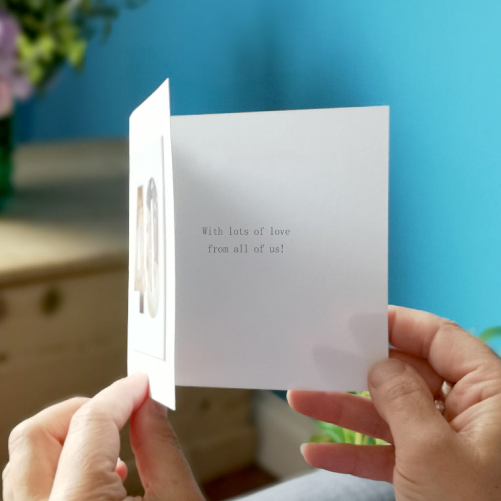 The photo digits are mounted on 350 gsm white card which sits proud on a square card which is encased in a white envelope. The card can be left blank inside for your own message can be posted to you. Or you can supply a message for the inside of the card and I can send it direct for you.
