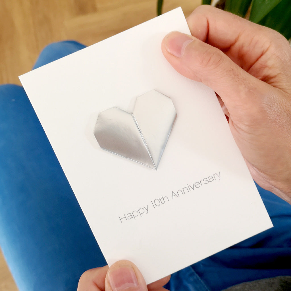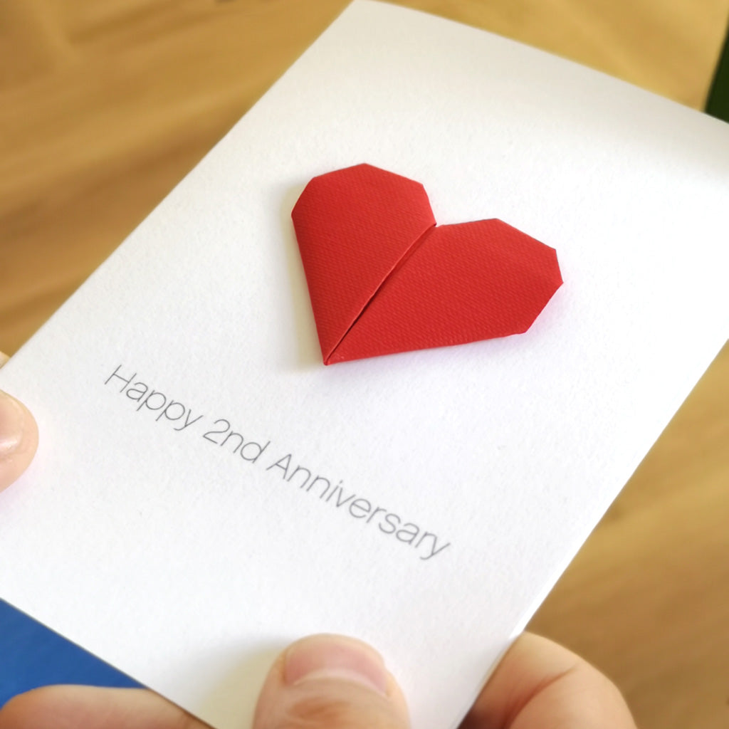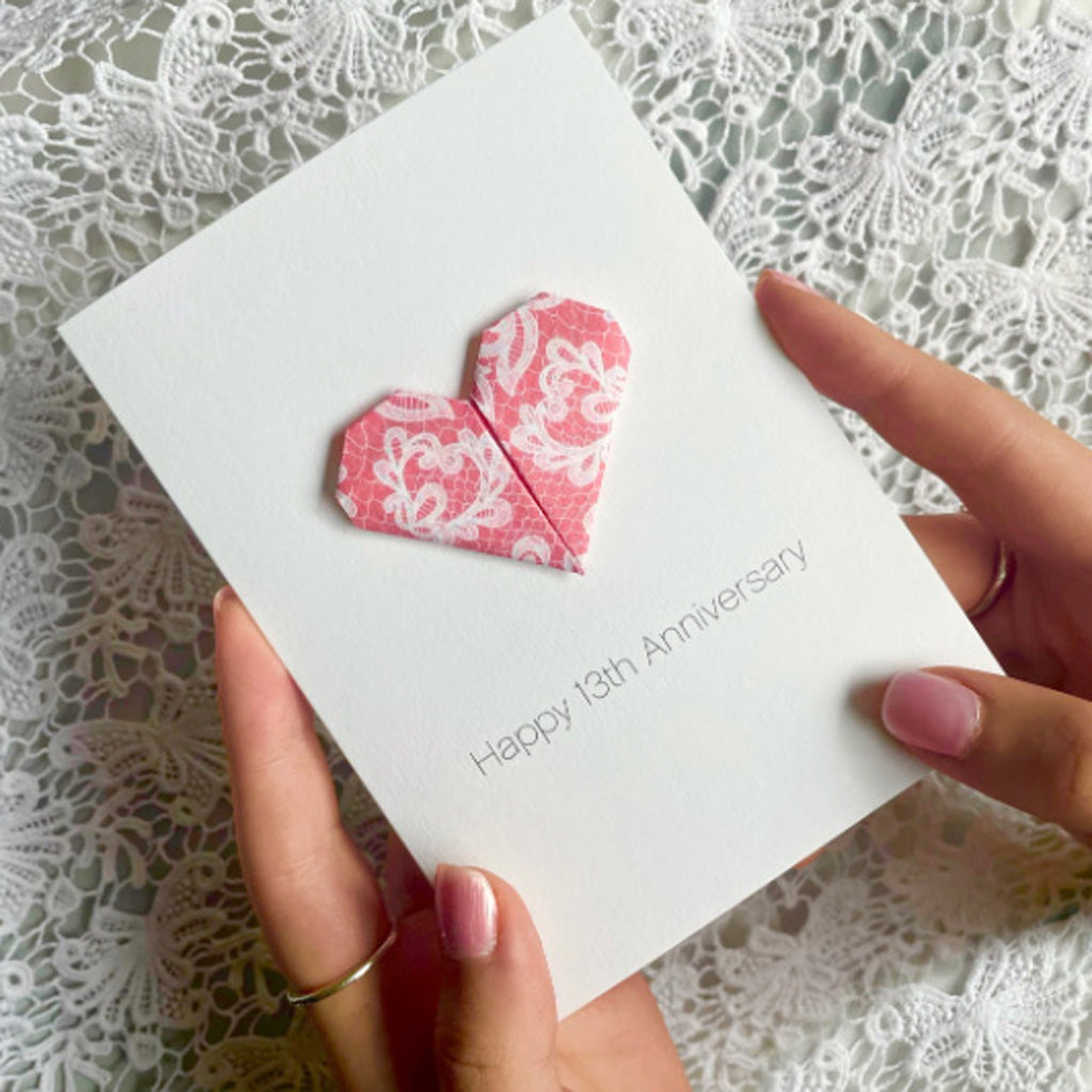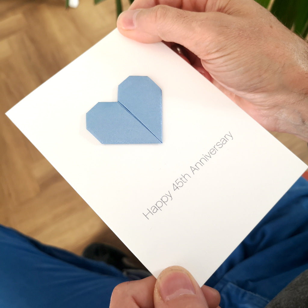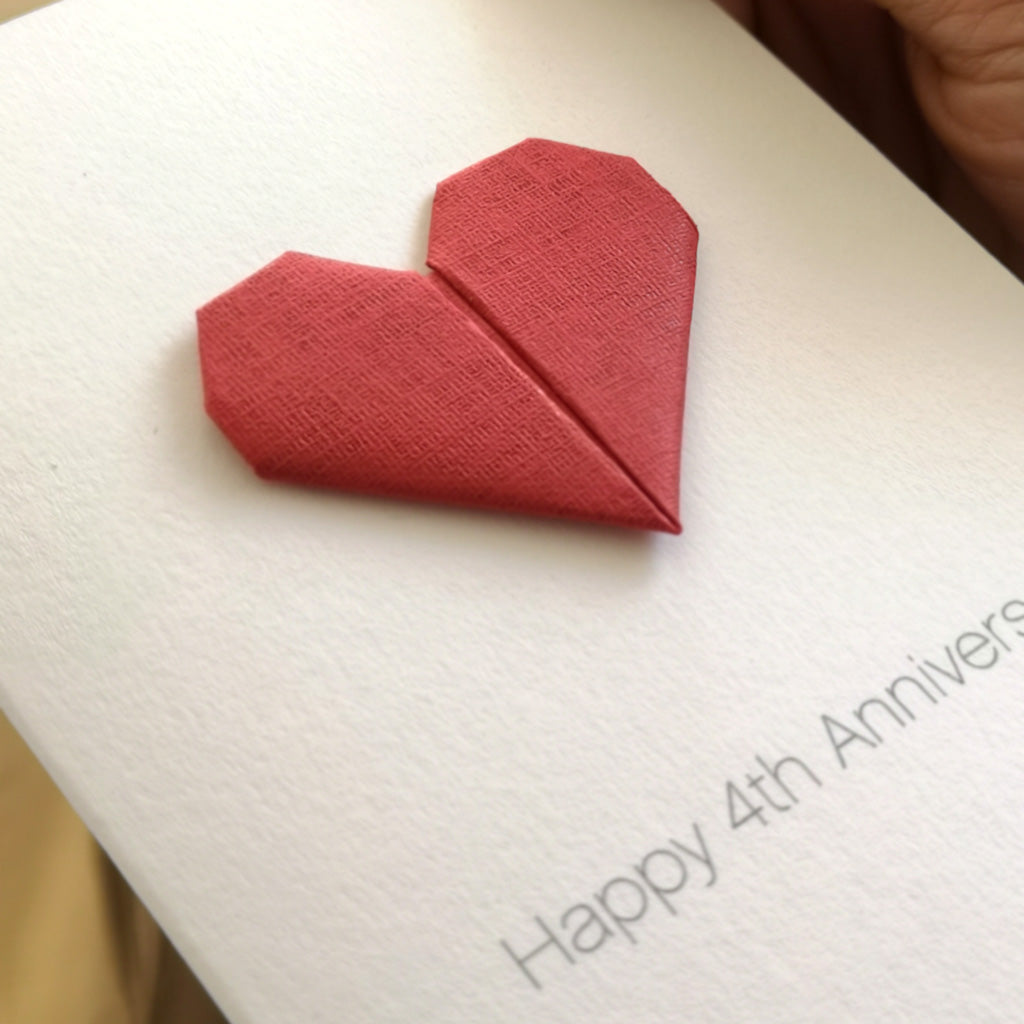 Celebrate your wedding anniversary by year with this personalised origami heart card.