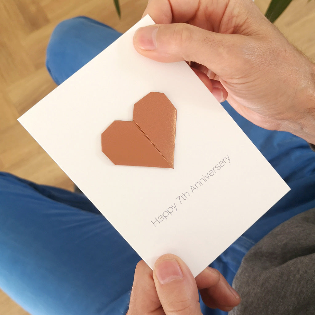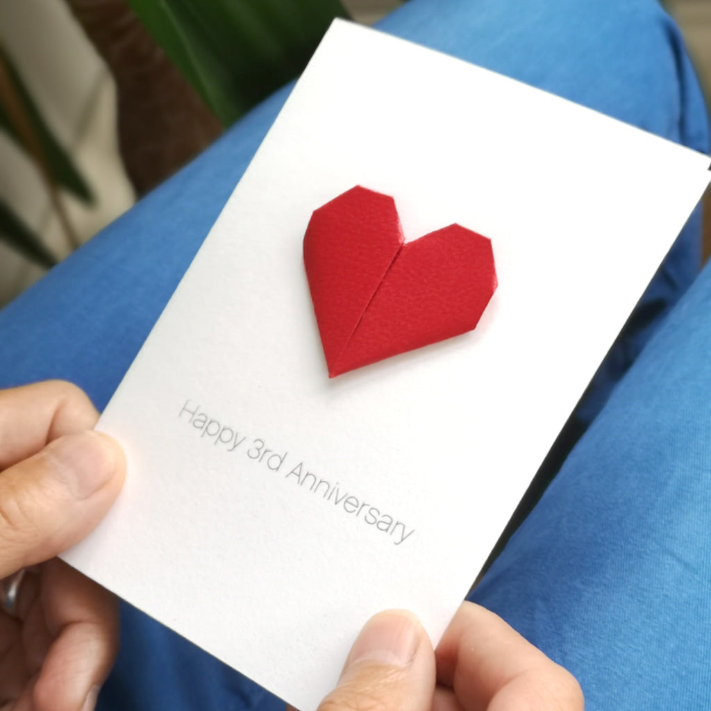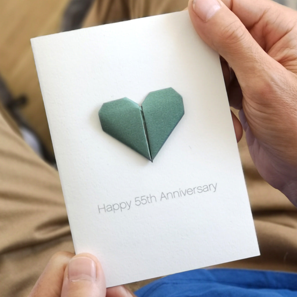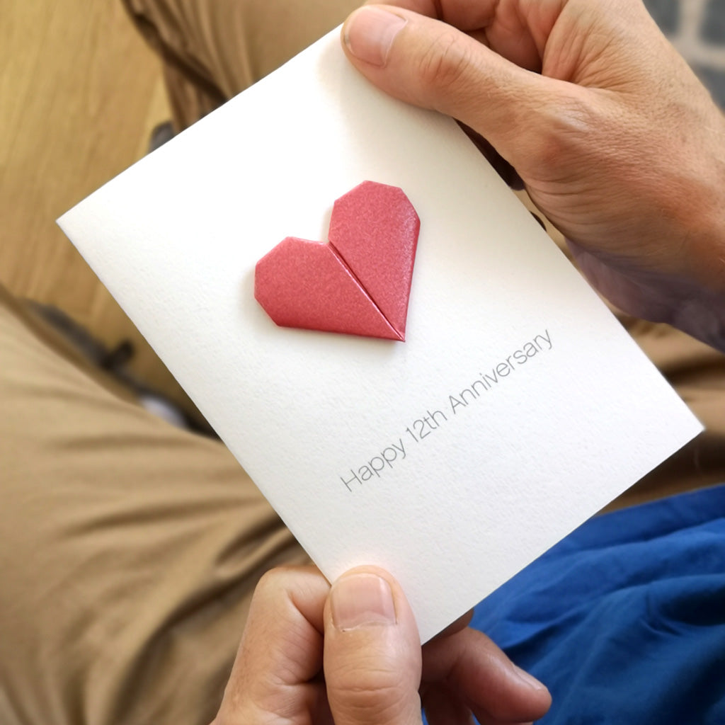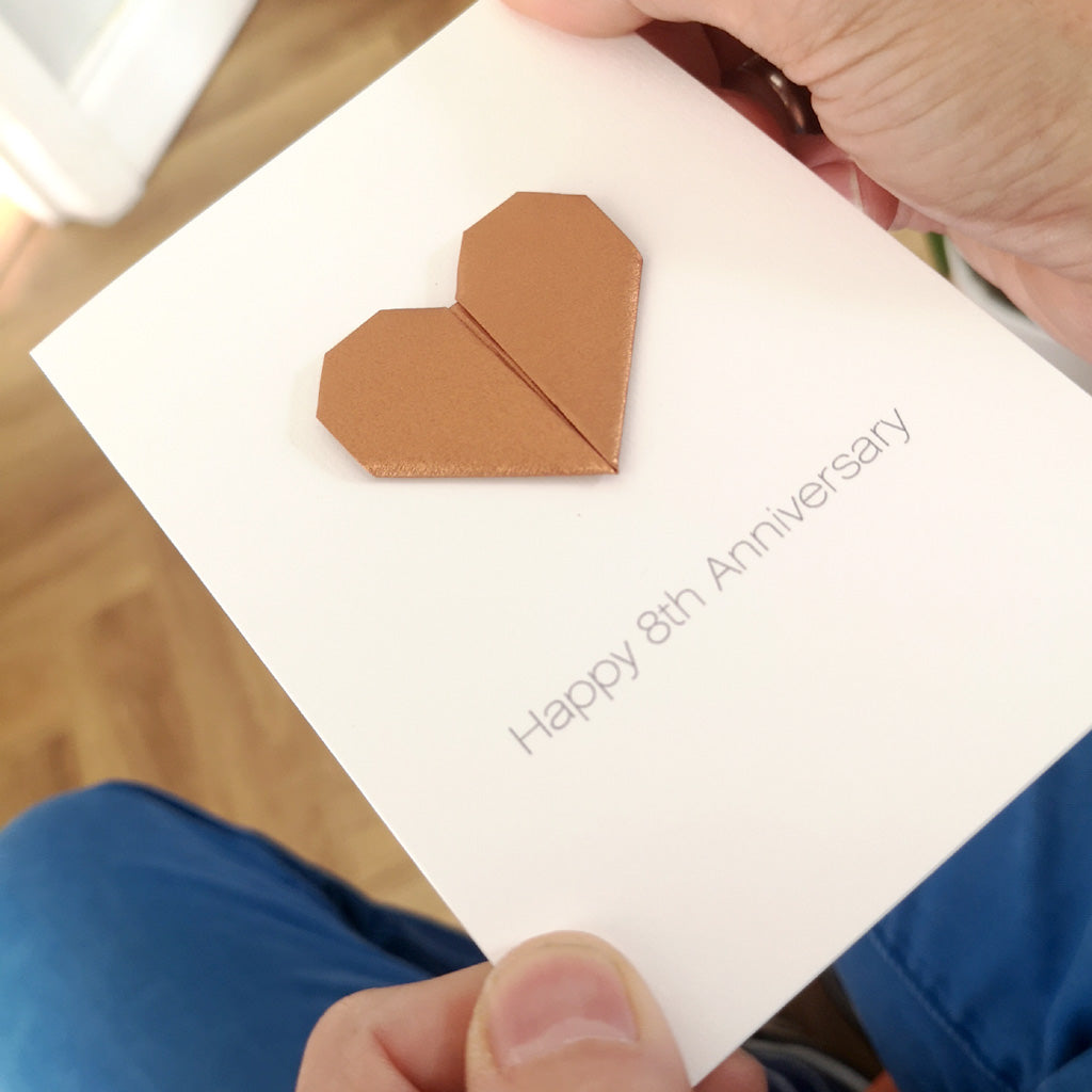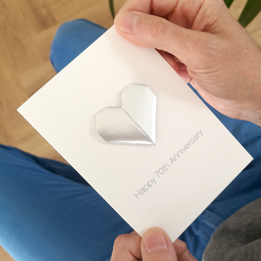 Celebrate your wedding anniversary by year with this personalised origami heart card.