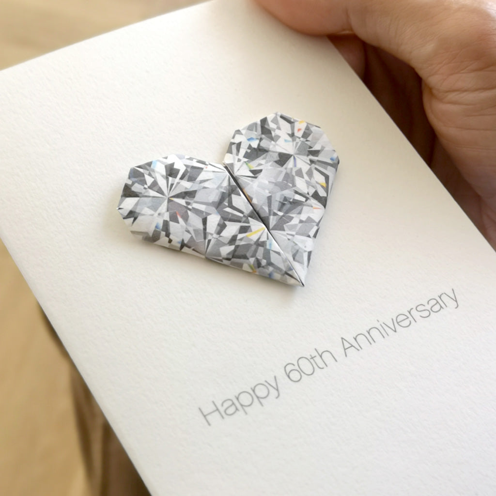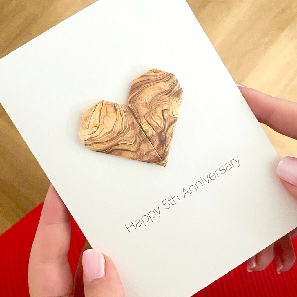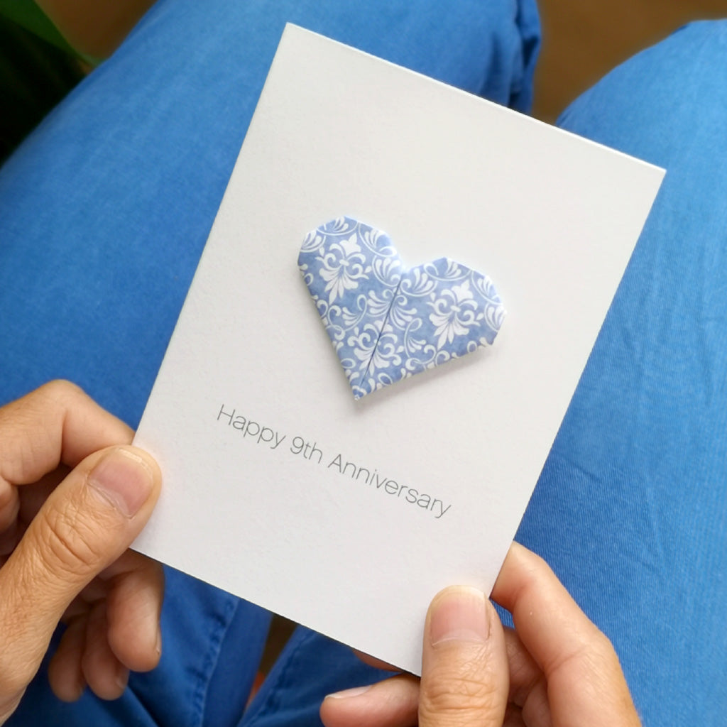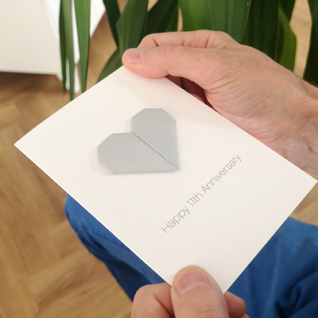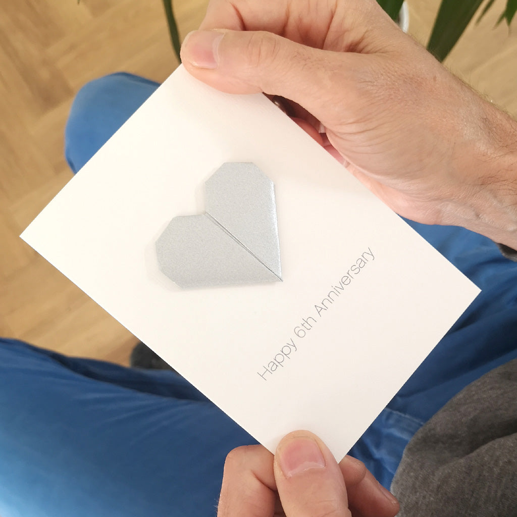 Celebrate your wedding anniversary by year with this personalised origami heart card.