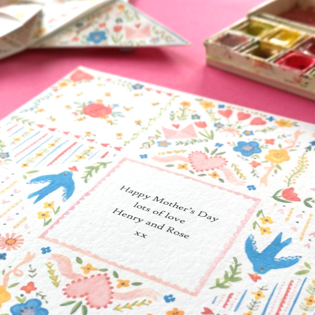This Personalised Mother's Day Victorian Puzzle Purse is printed on textured 120gsm paper and comes in a translucent vellum square envelope and is sealed with a wax seal.