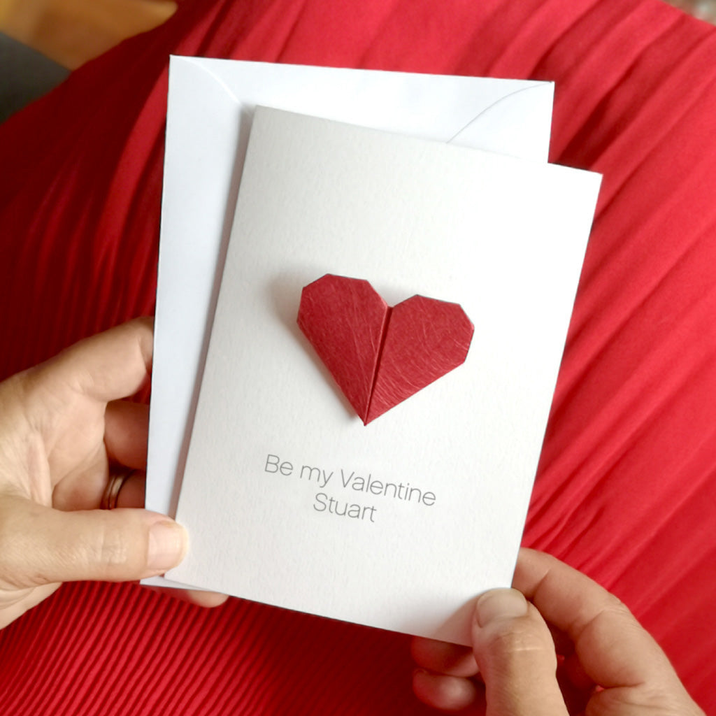 Love is within this beautiful origami heart keepsake. Open the card to reveal your favourite...