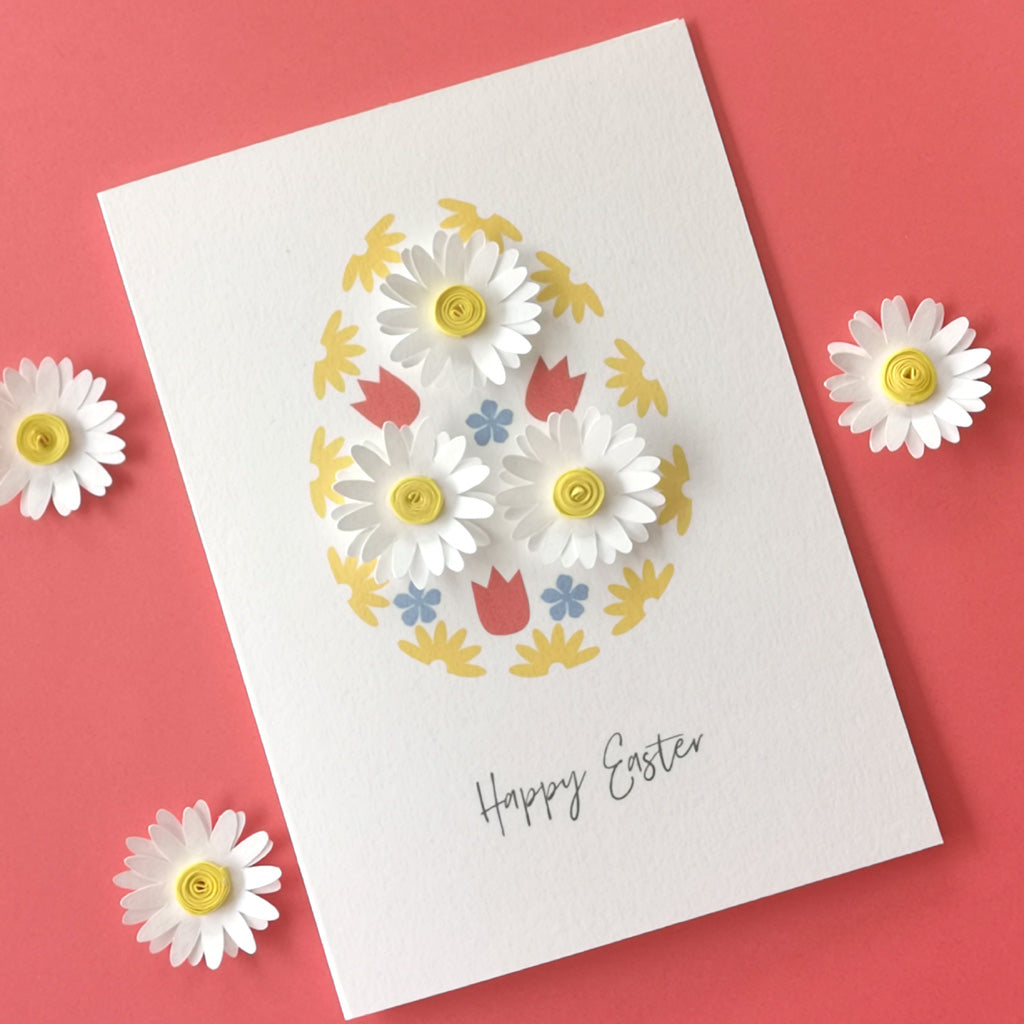 Send Easter greetings with this Happy Easter egg with paper tulip flower card
