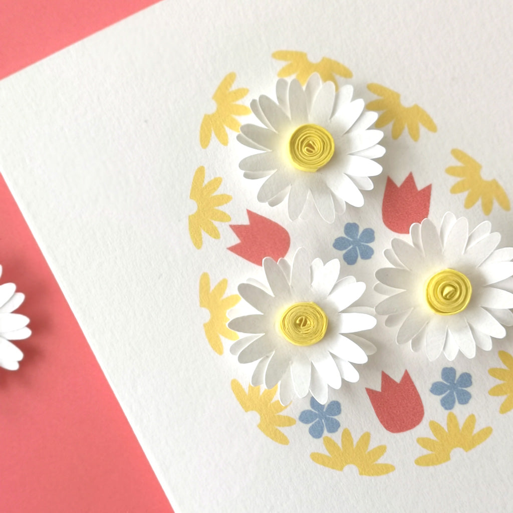 A delightful way to celebrate Easter! This card has beautifully cut and assembled tulips. The 2D floral shapes are printed on 250gsm hammered white card. This Easter card is encased in a crisp white envelope.
