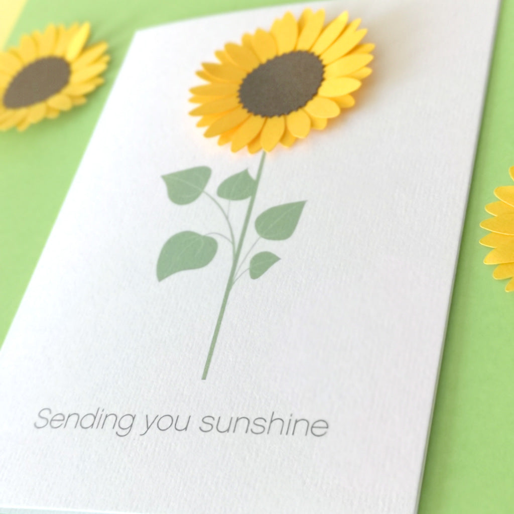 Beneath the sunflower are the words 'sending you sunshine', but you’re welcome to personalise this message to suit your occasion – whether it’s a birthday, a thank you, or just because. You can also add your own words inside the card, making it truly one-of-a-kind.