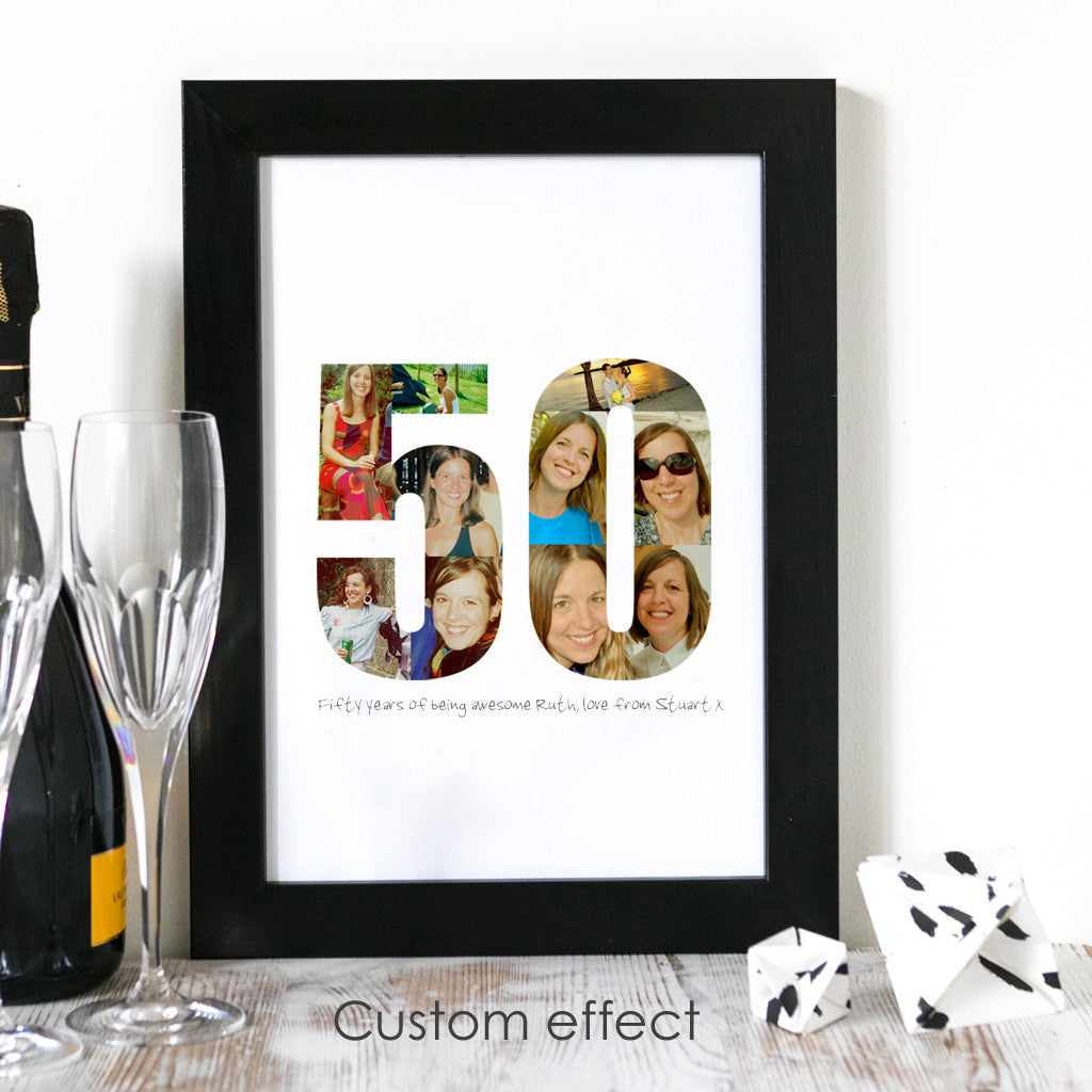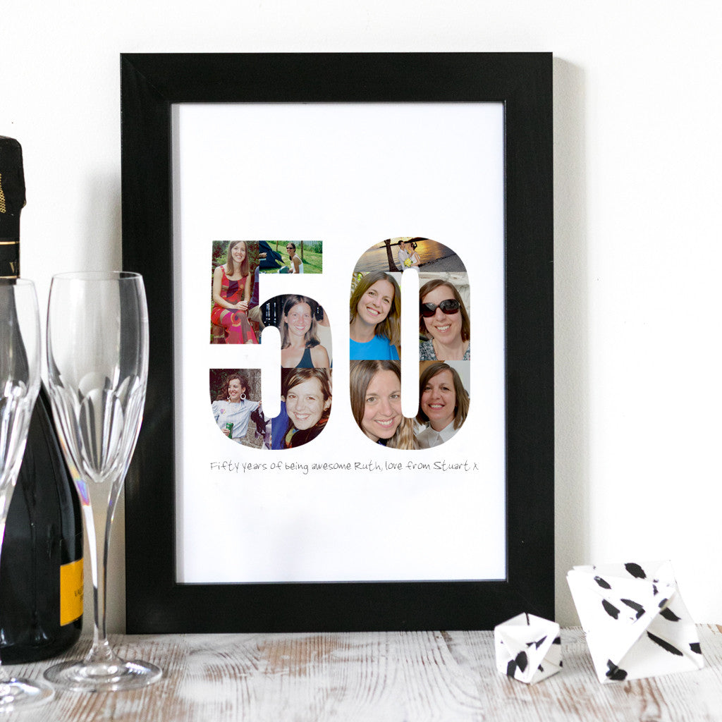 From the recipient’s childhood, to their graduation, to their wedding day and beyond, a lifetime of photos spell the milestone birthday number. It’s the perfect landmark birthday gift!