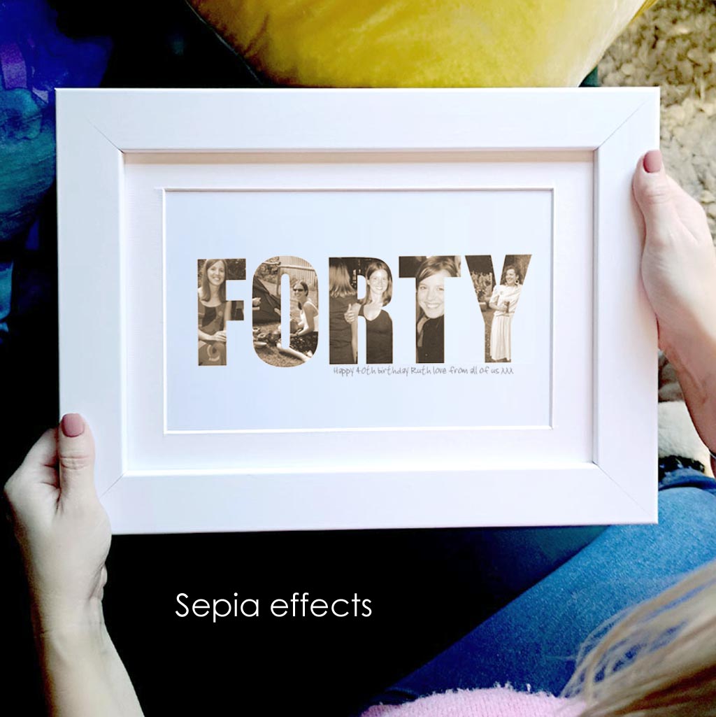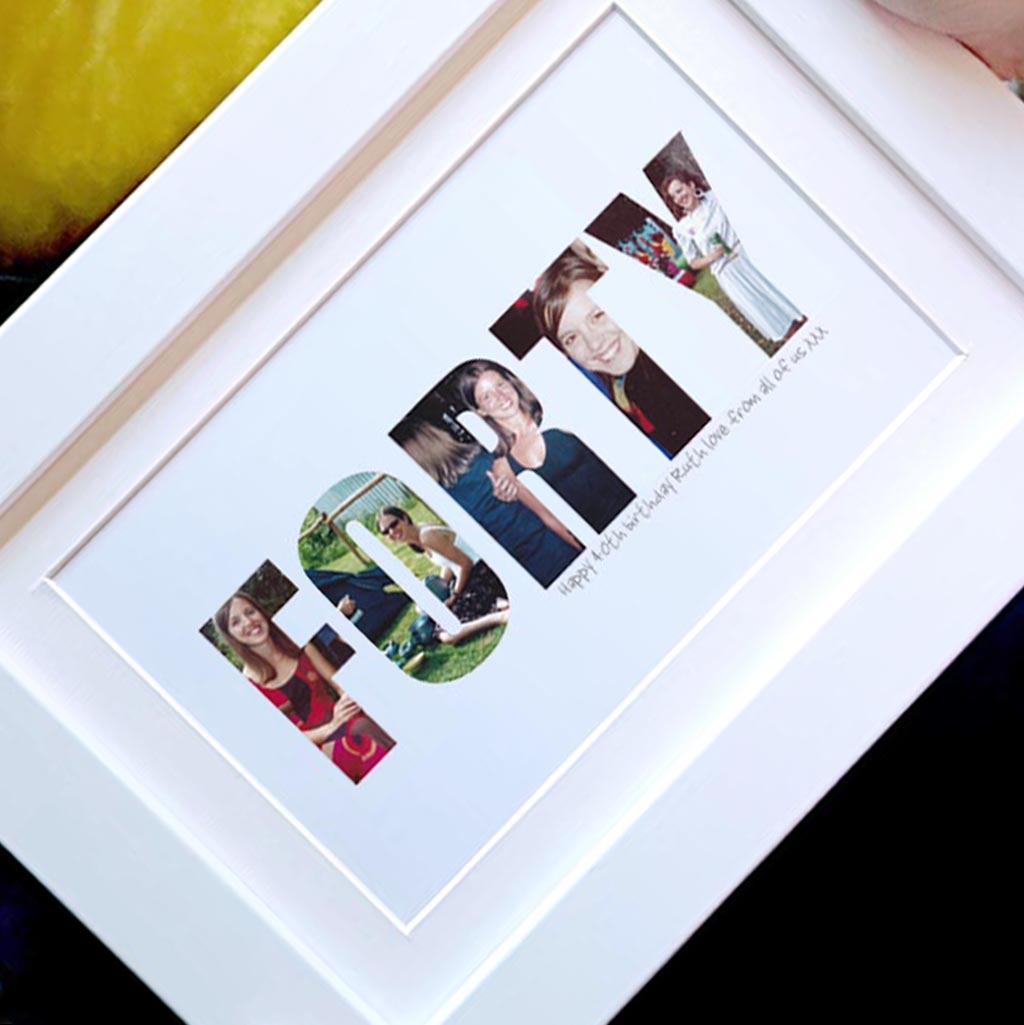 Treat the birthday girl or boy to a gift they’ll treasure with a personalised 40th forty birthday photo gift, using your photos to spell out their age.