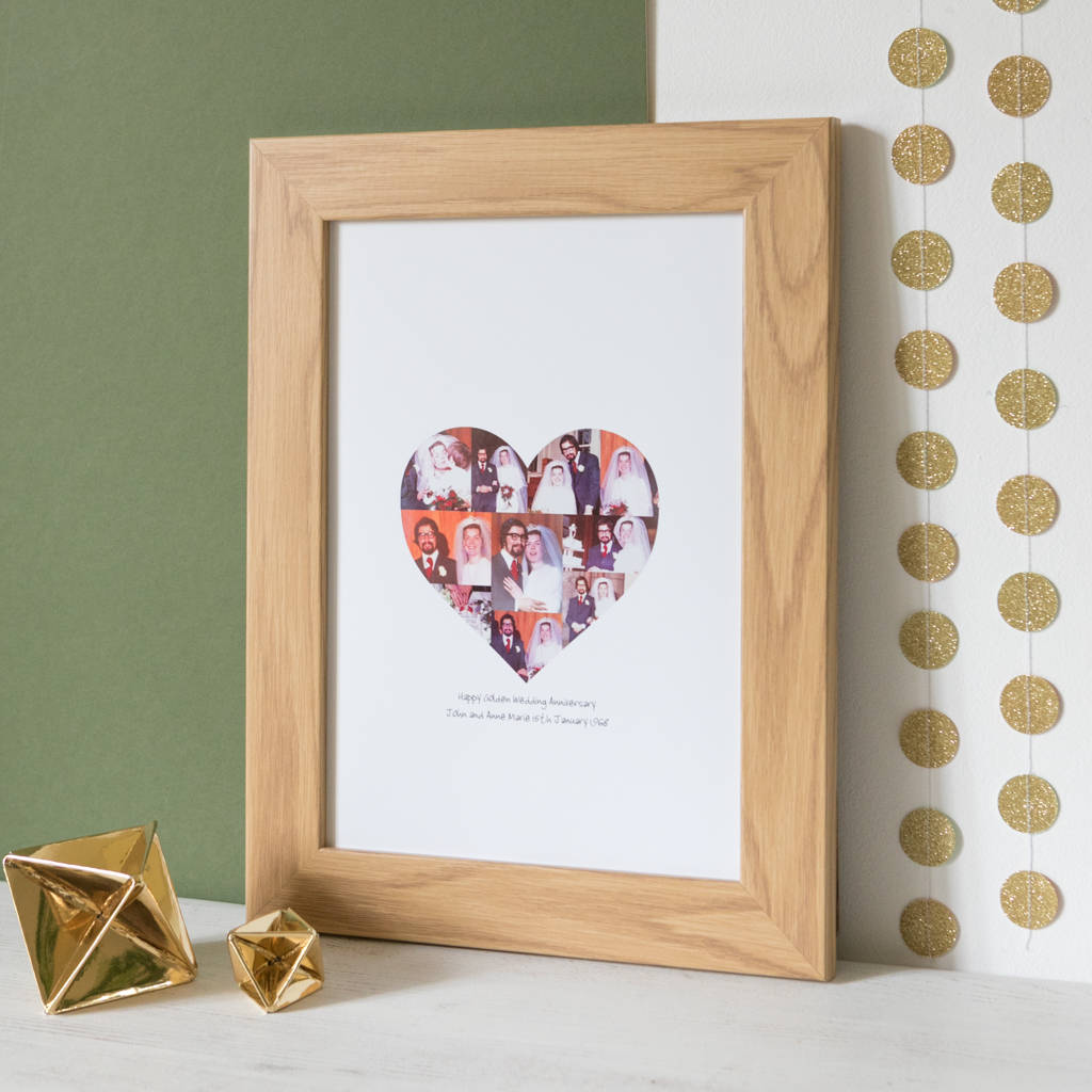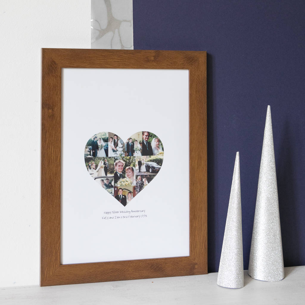 Celebrate your wedding anniversary with a personalised photo heart collage, filled with photos of your big day.