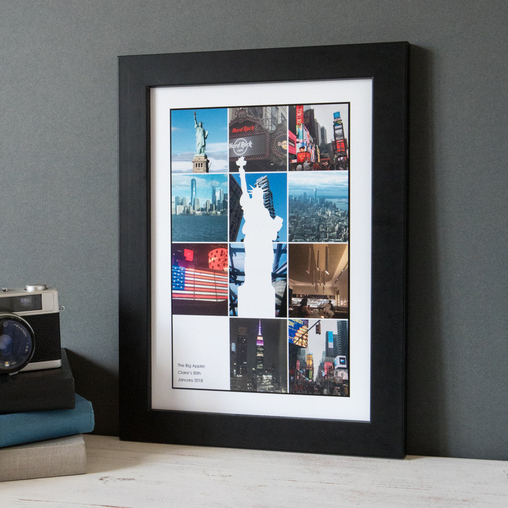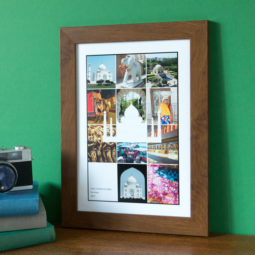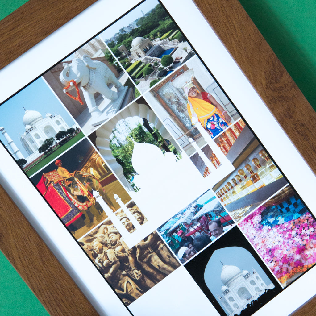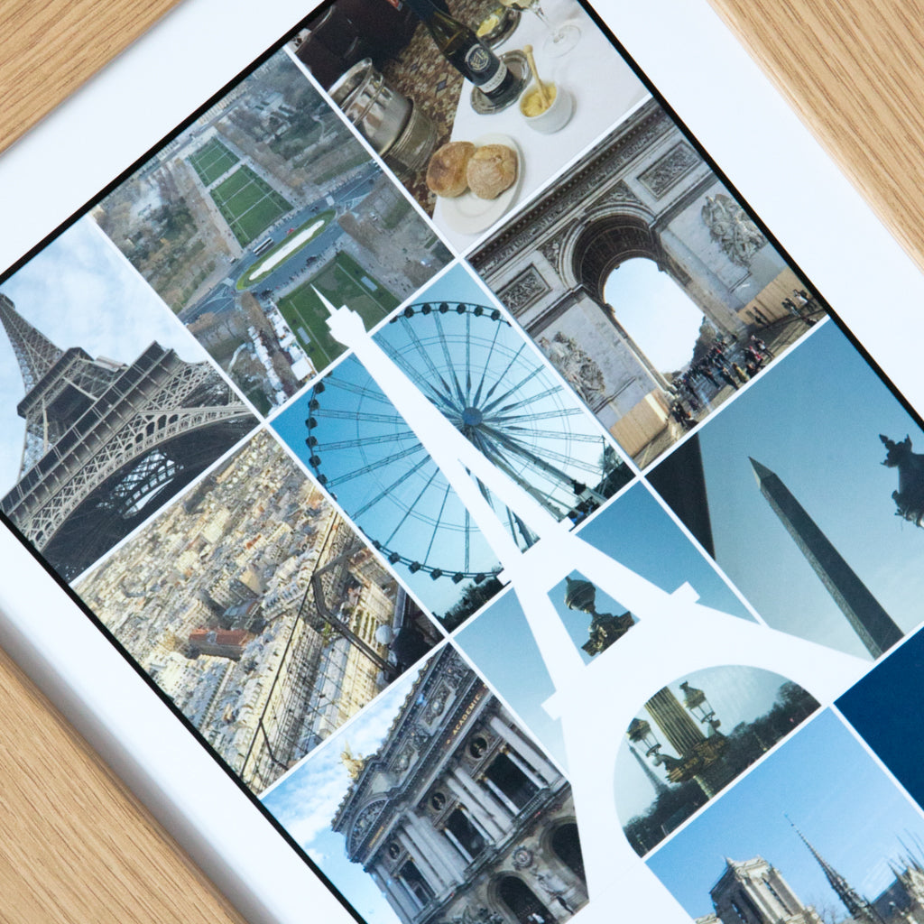 Want to display your special holiday memories in a stylish way? Create a personalised travel landmark photo collage print with your favourite photos.