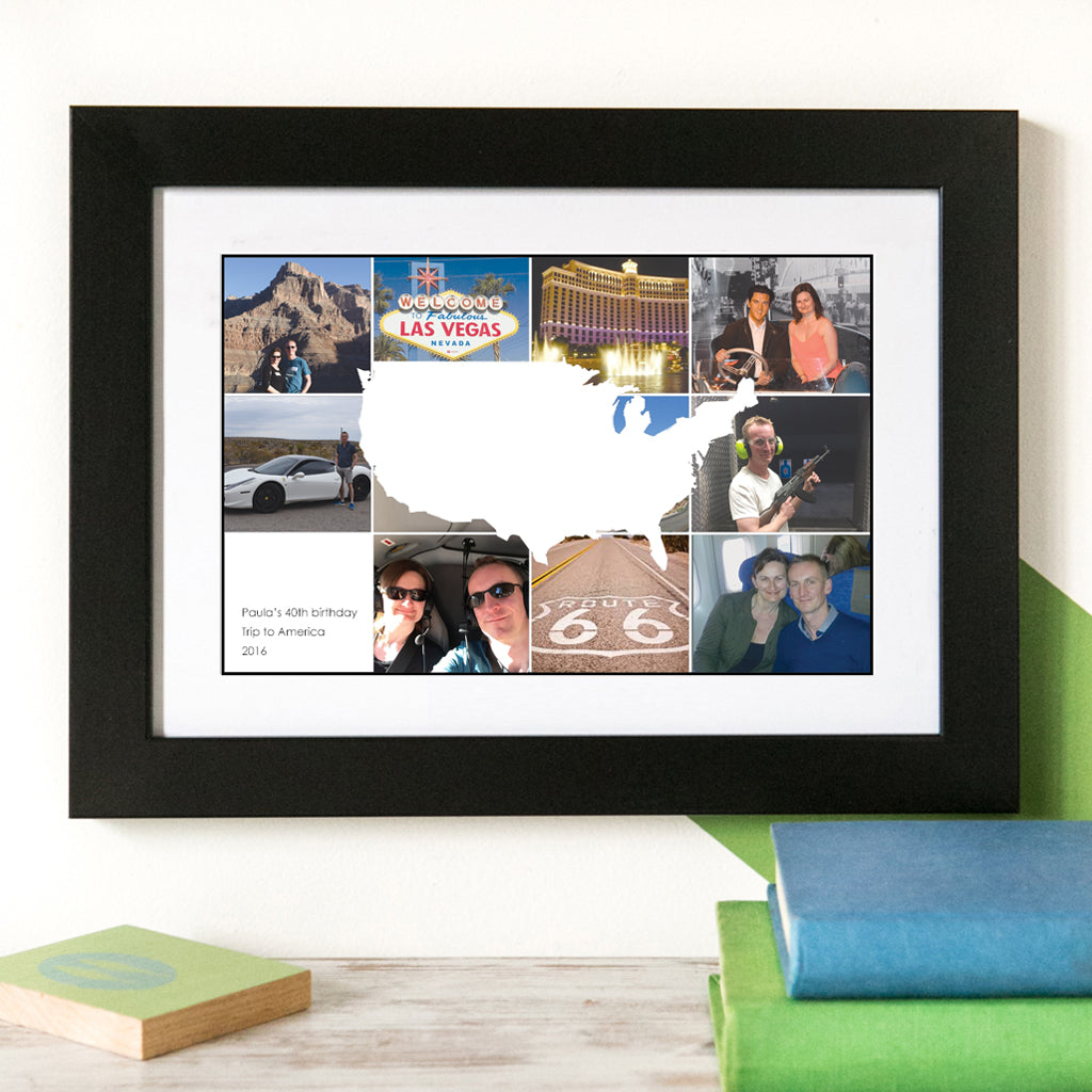 The perfect gift for globetrotters, adventurers and map lovers. Choose photos from family holidays, a road trip, your travels or even your wedding abroad! Makes a special birthday, Anniversary, Valentine, or housewarming present.
